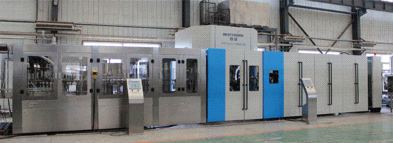 日前,湛江市椰湛飲料有限公司訂購的吹瓶/沖瓶/灌裝/旋蓋四合一體式機(jī)組,在廊坊百冠總裝車間順利完成了出廠測(cè)試,將于近日發(fā)貨客戶現(xiàn)場(chǎng)。該設(shè)備生產(chǎn)速度為20000瓶/小時(shí),將用以灌裝“椰樹牌”天然泉水。