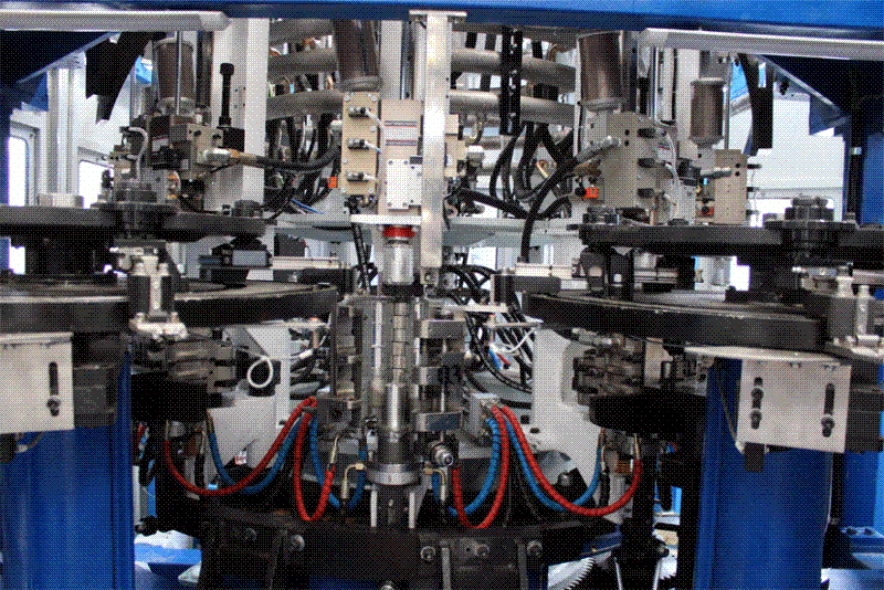 吹瓶部分實(shí)施了機(jī)械手雙層軌道曲線設(shè)計(jì)、吹瓶機(jī)模號(hào)加裝壓力檢測(cè)裝置、主吹輪氣源進(jìn)出采用旋轉(zhuǎn)式動(dòng)靜密封氣套(發(fā)明專利產(chǎn)品)、吹瓶機(jī)主吹輪采用旋轉(zhuǎn)式機(jī)械補(bǔ)償水套等多項(xiàng)技改措施,大大加強(qiáng)了吹瓶運(yùn)行的安全性、穩(wěn)定性,并延長了關(guān)鍵部件的使用壽命。